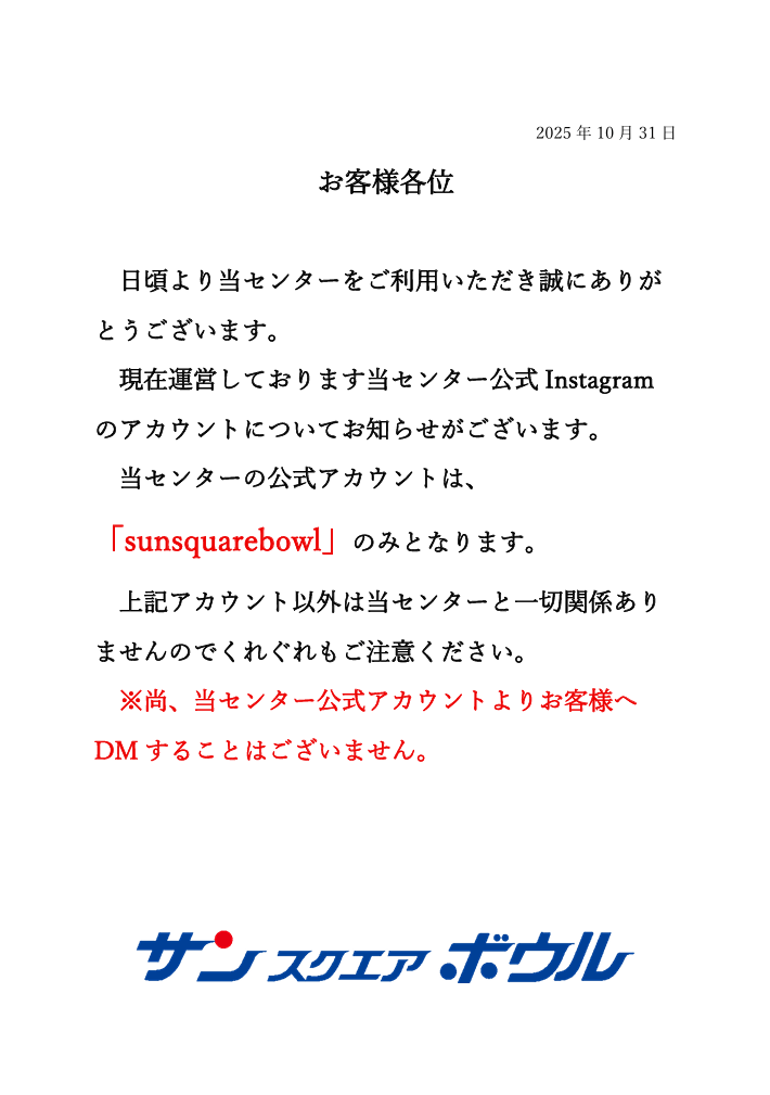 【サンスクエアボウル】インスタグラム公式アカウントについて