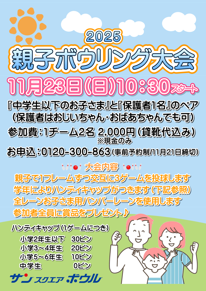 親子ボウリング大会🎳 サンスクエアボウル トピック 大会 ボウリング URLをコピーしました! STMグリップ交換会 【サンスクエアボウル】会員ロッカー更新の案内 関連記事 【サンスクエアボウル】学校団体予約受付中!🏫 2025年11月4日 【サンスクエアボウル】会員ロッカー更新の案内 2025年11月4日 【サンスクエアボウル】ボウリング×141 OUJI TABLE 予約プラン🎳🍴 2025年11月1日 【サンスクエアボウル】Instagram公式アカウントについて 2025年10月31日 【サンスクエアボウル】ボウリングゲーム価格改定のお知らせ 2025年10月1日 【サンスクエアボウル】大会・レッスンのご案内🎳 2025年9月29日 【サンスクエアボウル】混雑・貸切案内🕑 2025年9月29日 【サンスクエアボウル】じゃんけんチャレンジ!開催!✊✌️✋ 2025年7月27日