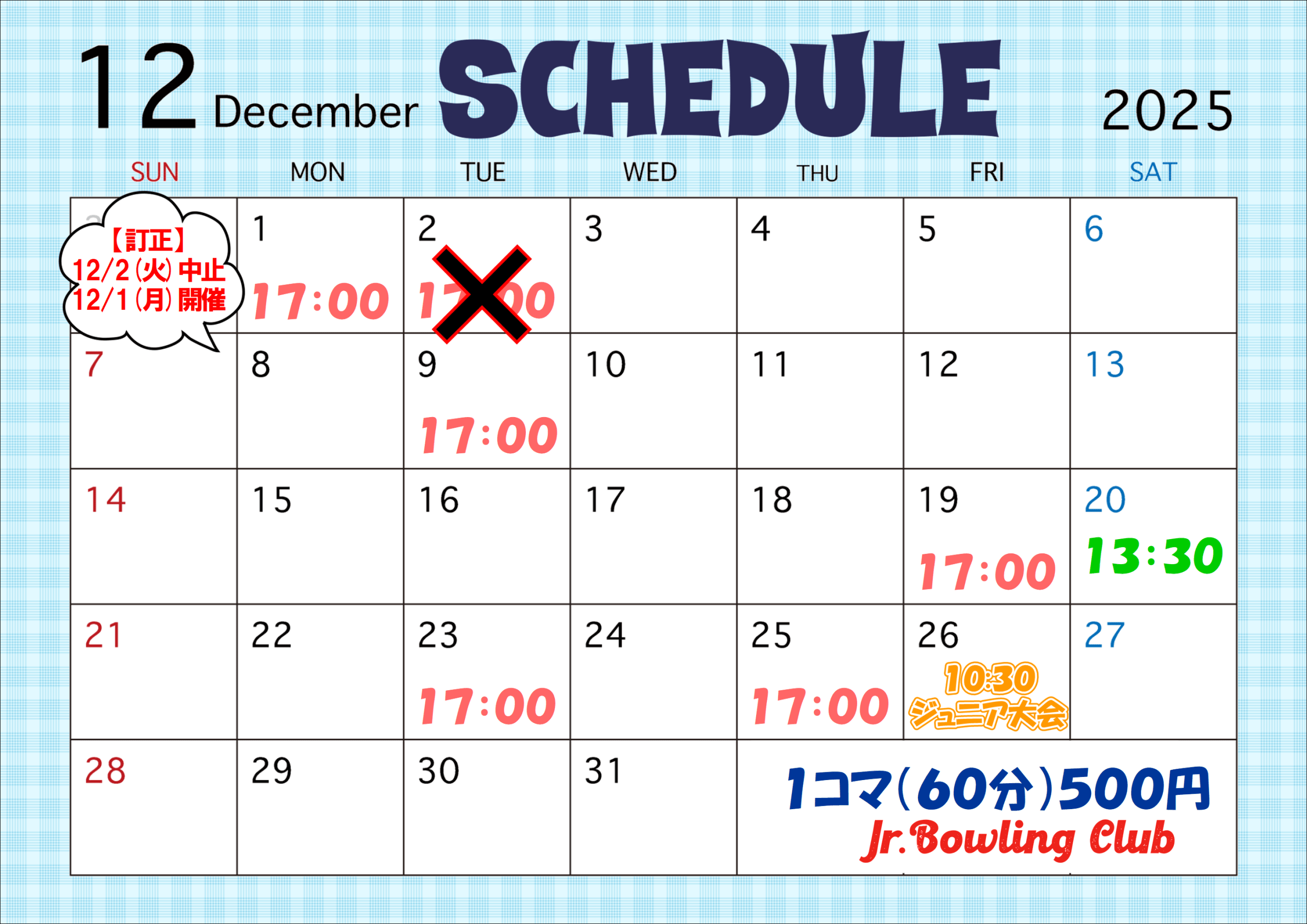 📅SJBC ジュニアボウリングクラブ スケジュール表