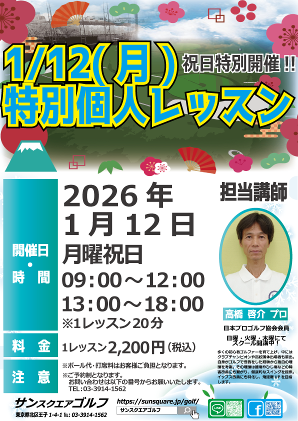 複数名で利用される場合は、人数分のレッスン数をご予約ください。 - ボール代及び打席料はお客様ご負担となります。