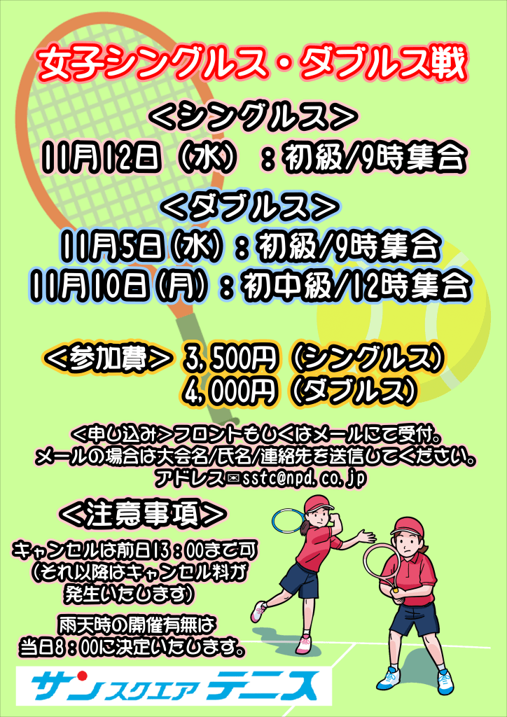 ・メールの場合は、『大会名・氏名・連絡先』を入力の上、お送りください。